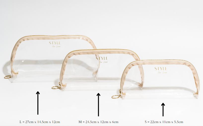 Perfect for tossing into your handbag or keeping your beauty essentials tidy by the sink. This clear makeup pouch is sold separately and available in three handy sizes — Small, Medium, and Large — so you can pick one to suit your needs.